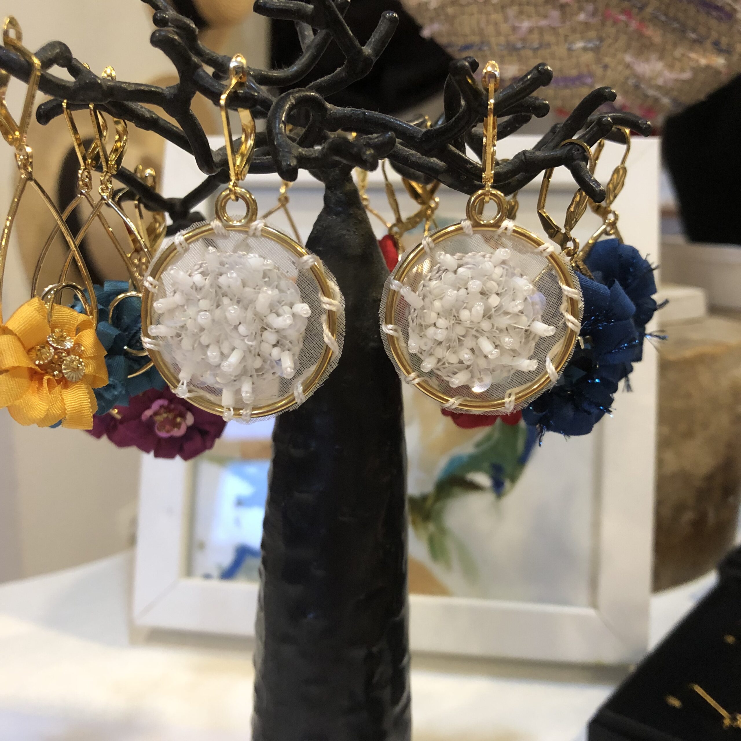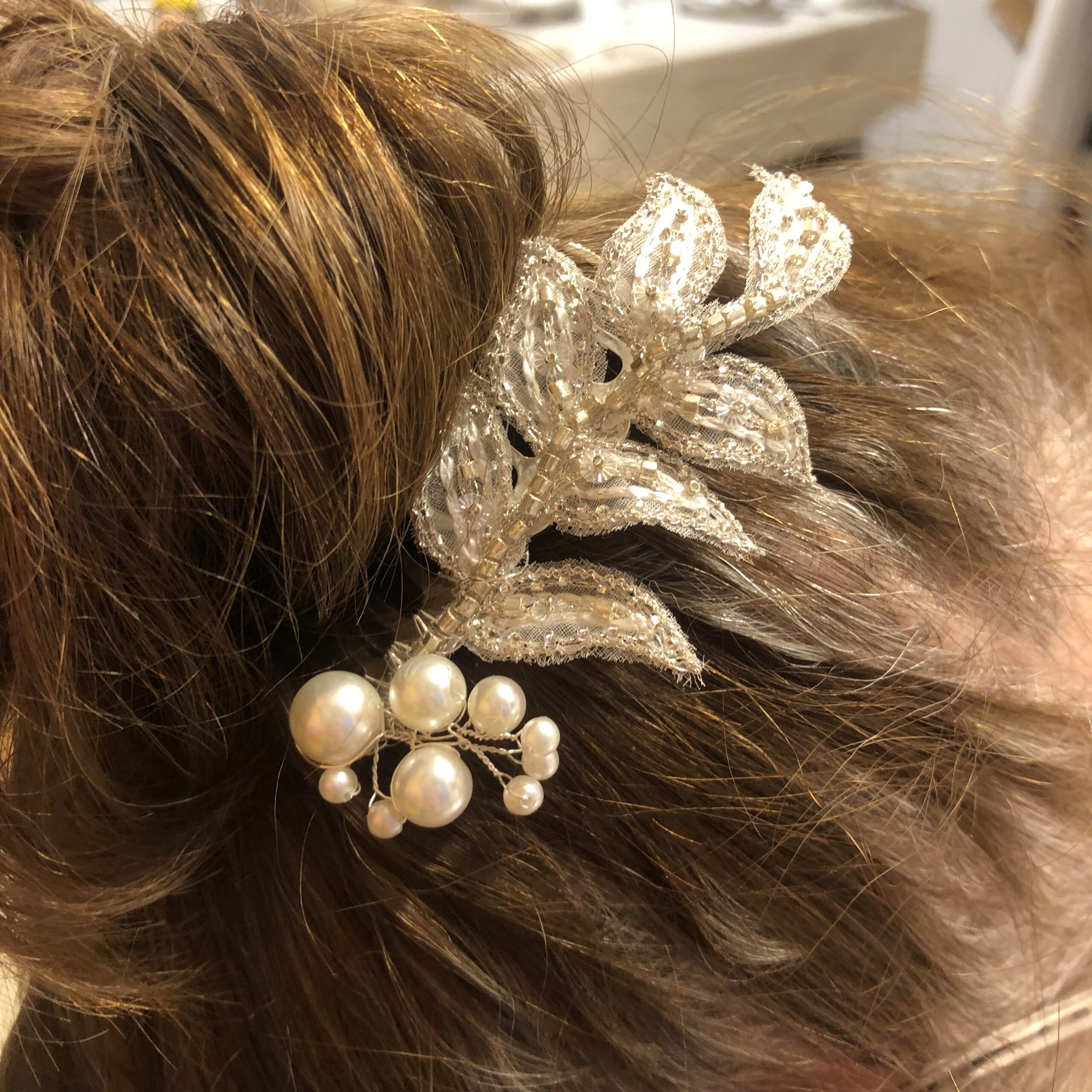 - La création d’accessoires et bijoux perlés, assortis à votre robe ou au thème du mariage : boucles d’oreille, bagues, broches, pochettes, bijoux de tête, peigne, barrettes, customisation de chaussures…
