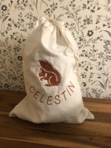 - Le baluchon de naissance : un sac personnalisable avec le nom de du nouveau-né, qui l’accompagnera ainsi que ses parents dans les premiers mois, puis deviendra un allié incontournable pour la crèche et l’école avant de devenir un doux souvenir de l’enfance.